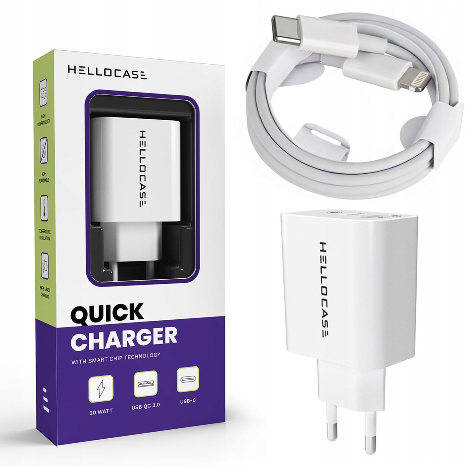 ZESTAW | SZYBKA ŁADOWARKA DO iPhone SIECIOWA USB TYPE-C + KABEL | 3000mA Marka Hello Case