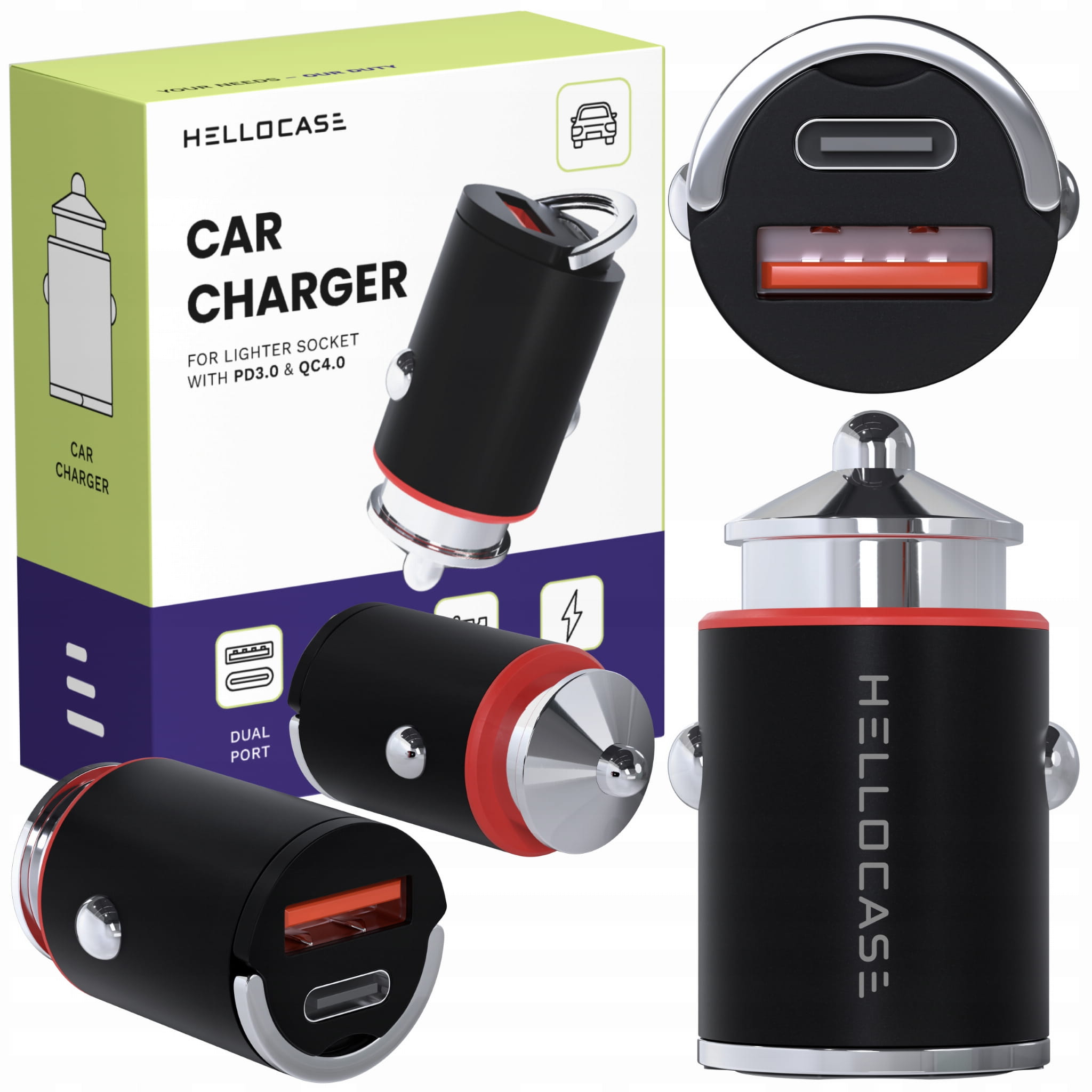 Szybka ładowarka samochodowa 30W do zapalniczki z USB i USB-C Marka Hello Case